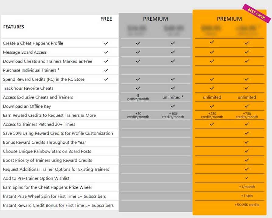 CheatHappens Premium is the paid membership for the website, above the basic free tier, that lets you try out a few trainers from their service.